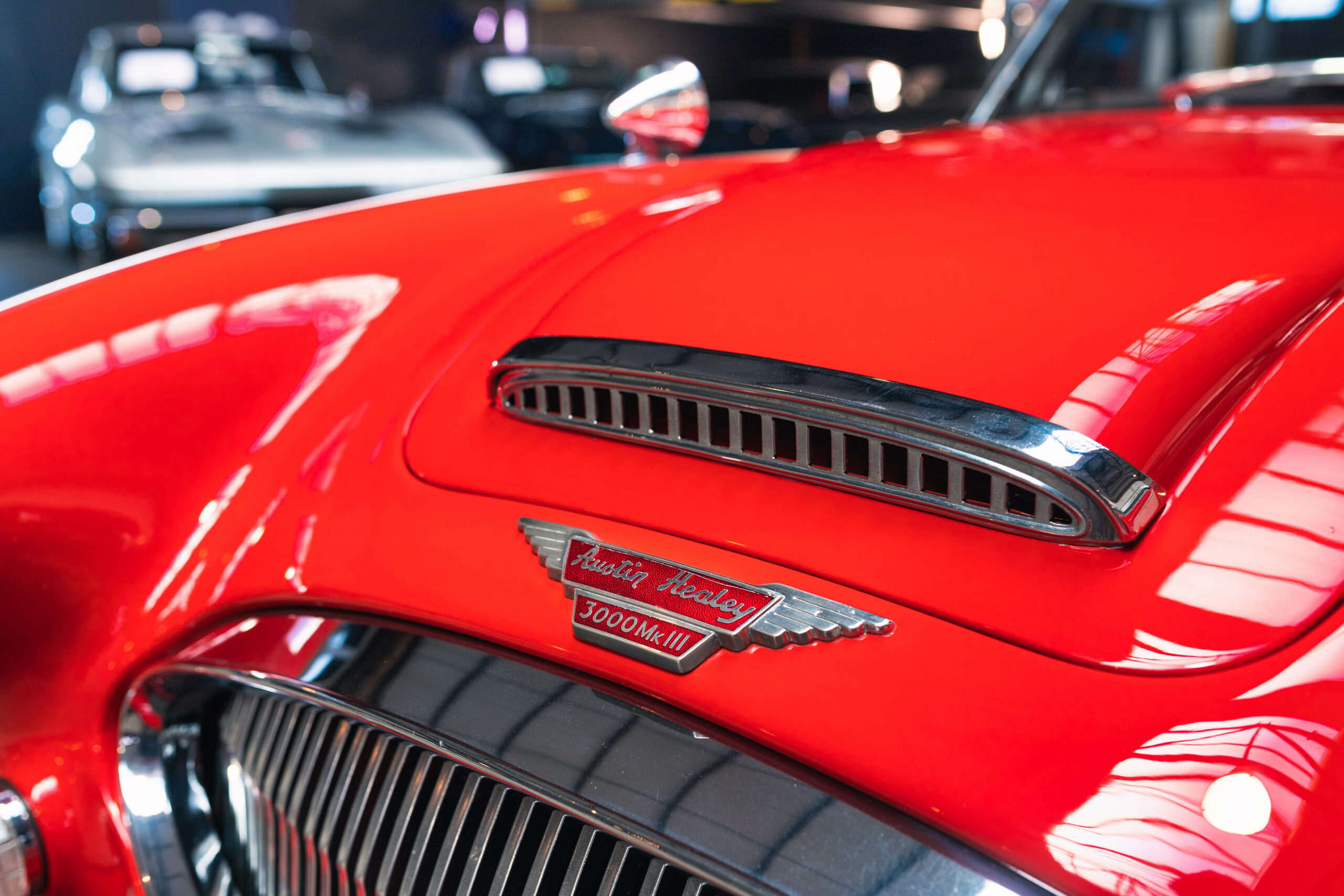 L’Austin Healey 3000 MK3 est l’un des roadsters britanniques les plus emblématiques des années 1960. Produite entre 1963 et 1967, elle représente la version la plus aboutie de la série 3000. Elle est équipée d’un moteur 6 cylindres en ligne de 2912 cm³, développant environ 150 chevaux. Le MK3 se distingue par son design élégant, ses lignes fluides et sa calandre chromée.