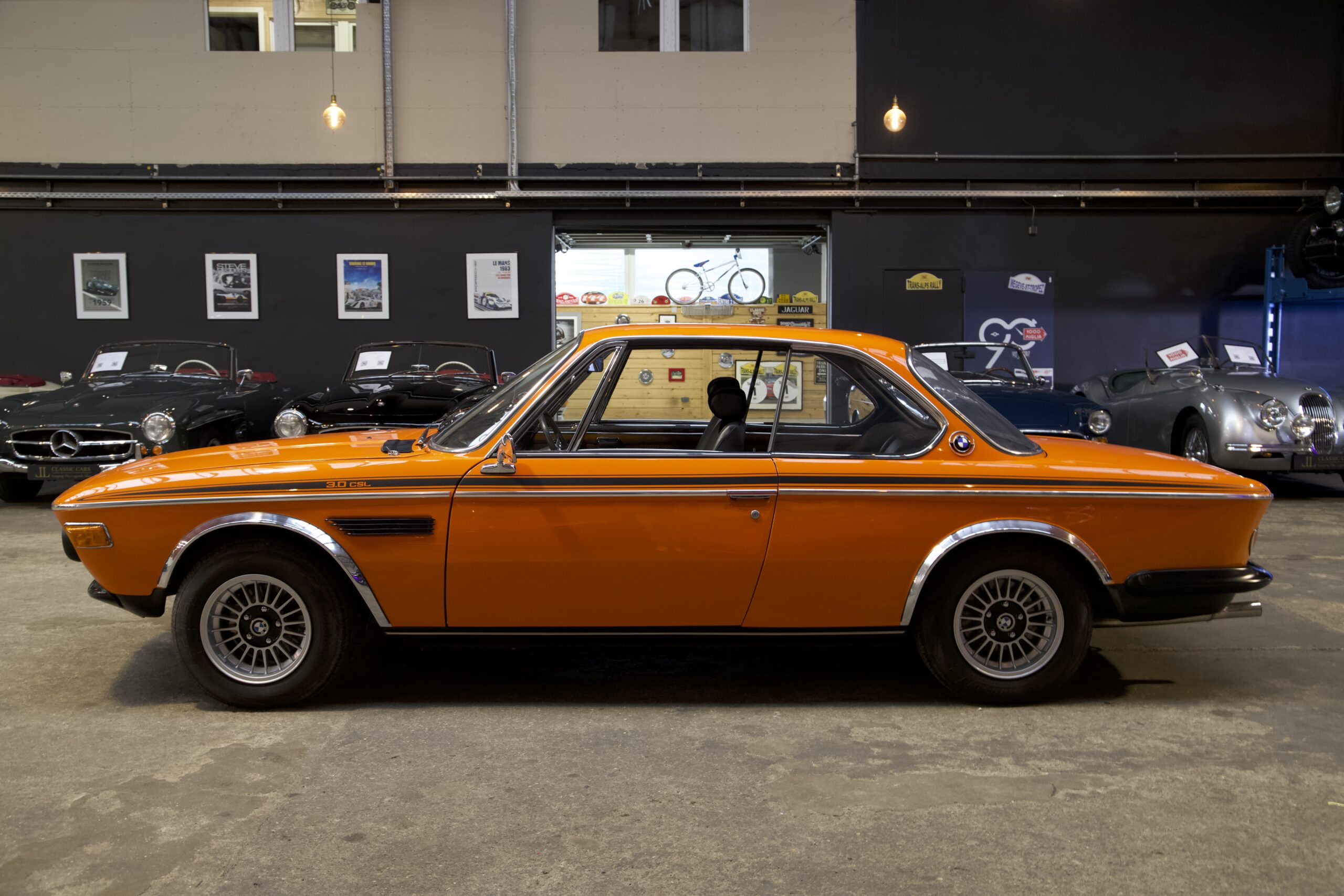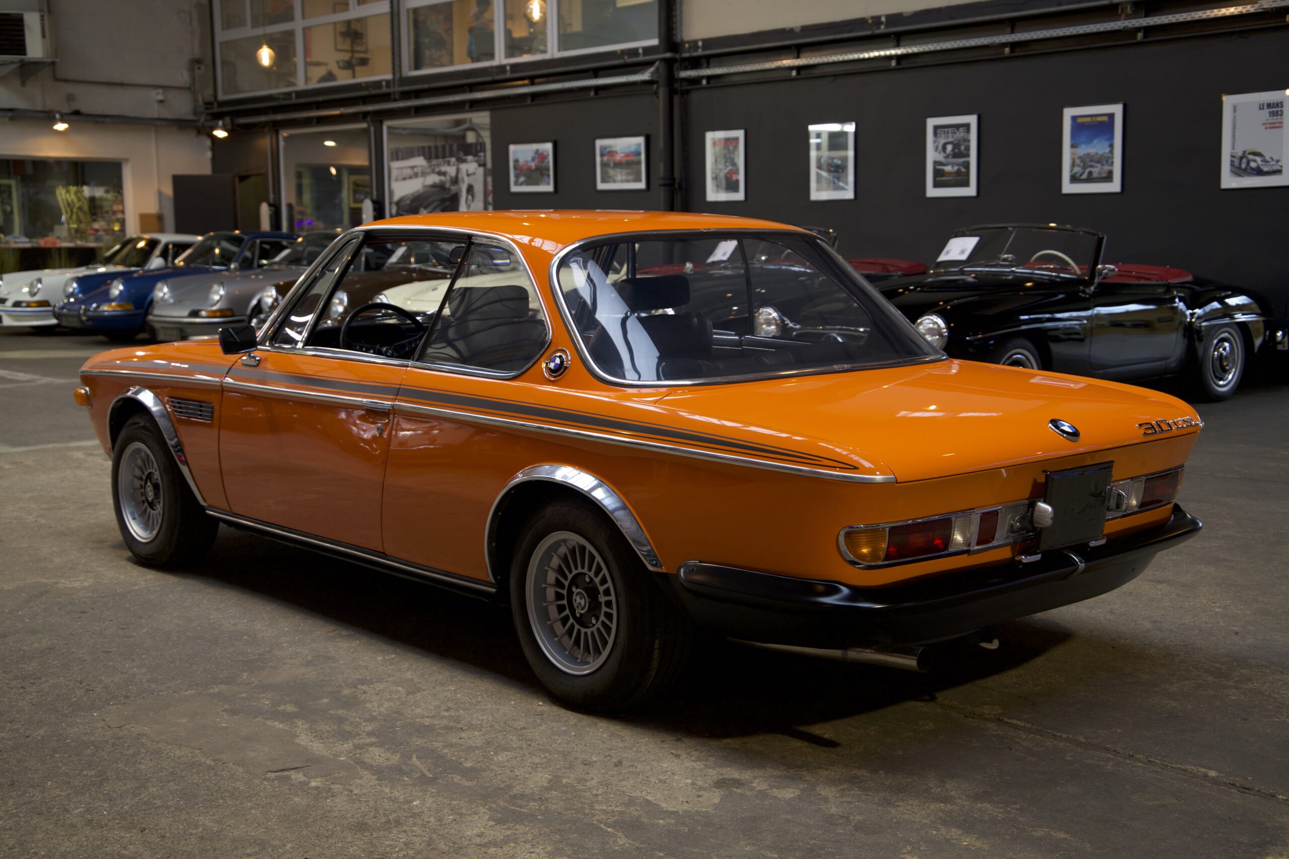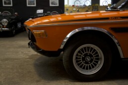 La 3.0 CSL (le « L » signifiant leicht, c’est-à-dire légère) utilisait le moteur à carburateur de 180 ch, comme la CS, et se distinguait par des arches de roue chromées, des pare-chocs plus fins peints en noir mat et une bande adhésive latérale noire. L’intérieur, à l’exception des sièges sport en cuir et tissu et du volant au style « racing », restait identique à celui des versions normales. Cependant, la différence essentielle résidait dans le poids réduit grâce à l’utilisation d’aluminium pour la carrosserie et de plexiglas pour les vitres, rendant la voiture idéale pour la compétition.