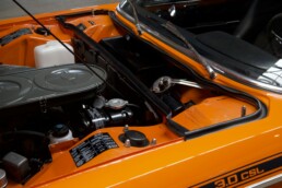Cette voiture est dans un état exceptionnel, tant au niveau de la carrosserie que de la mécanique, ayant récemment été restaurée et repeinte dans sa superbe teinte originale Inka. Les moulures, cerclages, joints, rétroviseurs extérieurs, poignées, pare-chocs, badges et livrée 3.0 CSL ont tous été remplacés ou restaurés.