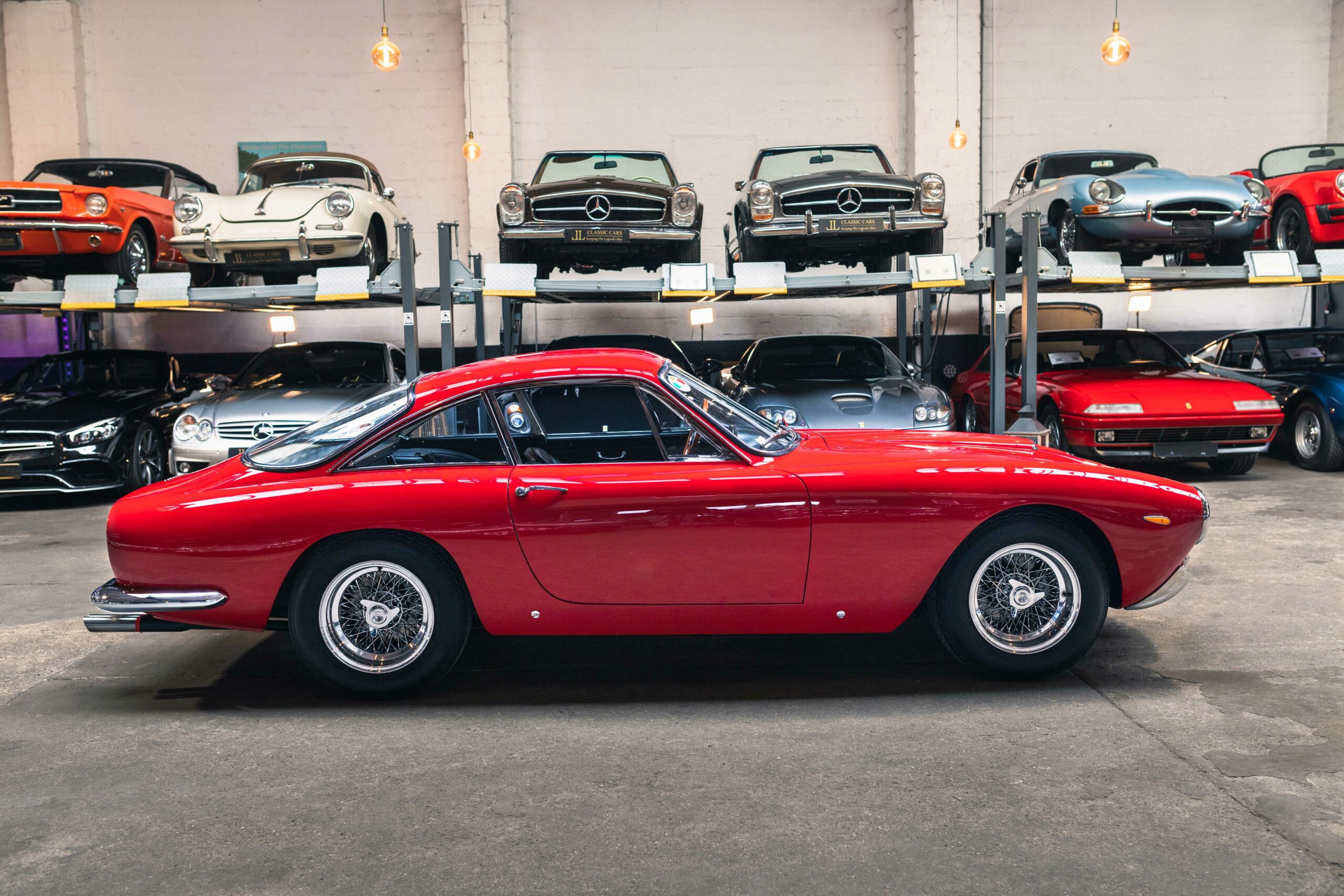 Nous avons l’honneur de proposer à la vente une exceptionnelle Ferrari 250 GT Lusso de 1964. Produite à seulement 350 exemplaires, elle fait partie des modèles les plus recherchés de la marque au cheval cabré. Cette Lusso bénéficie d’un historique parfaitement connu et documenté. Elle a été restaurée il y a quelques années avec le plus grand soin. De nombreux frais ont été engagés auprès de l’Atelier des Coteaux, garantissant une présentation et un fonctionnement remarquables. Son parcours l’a même conduite à rejoindre temporairement la collection du Musée Ferrari à Maranello, un privilège rare. Elle est accompagnée de son célèbre classeur rouge Ferrari Classiche, attestant de son authenticité. Sa teinte rouge profonde évoque toute la passion et l’âme italienne propres à Ferrari. Sous la lumière, sa carrosserie révèle des courbes d’une élégance intemporelle. Le dessin signé Pininfarina sublime son long capot et sa poupe délicatement fuyante. Chaque ligne semble tracée pour célébrer la vitesse et la beauté. L’habitacle noir crée un contraste raffiné avec la robe rouge éclatante. Les sièges baquet enveloppent le conducteur dans une atmosphère à la fois sportive et feutrée. Les compteurs, si caractéristiques avec leur typographie fine et leur disposition centrale, rappellent l’âge d’or du grand tourisme. Le large volant en bois invite à prendre la route avec élégance. Les superbes jantes Borani à rayons complètent l’ensemble avec distinction. Elles soulignent le caractère racé de cette GT d’exception. À son volant, chaque trajet devient un voyage hors du temps. Cette 250 GT Lusso n’est pas seulement une automobile, c’est une œuvre d’art mécanique. Elle incarne le romantisme automobile italien, prête à écrire un nouveau chapitre de son histoire.