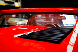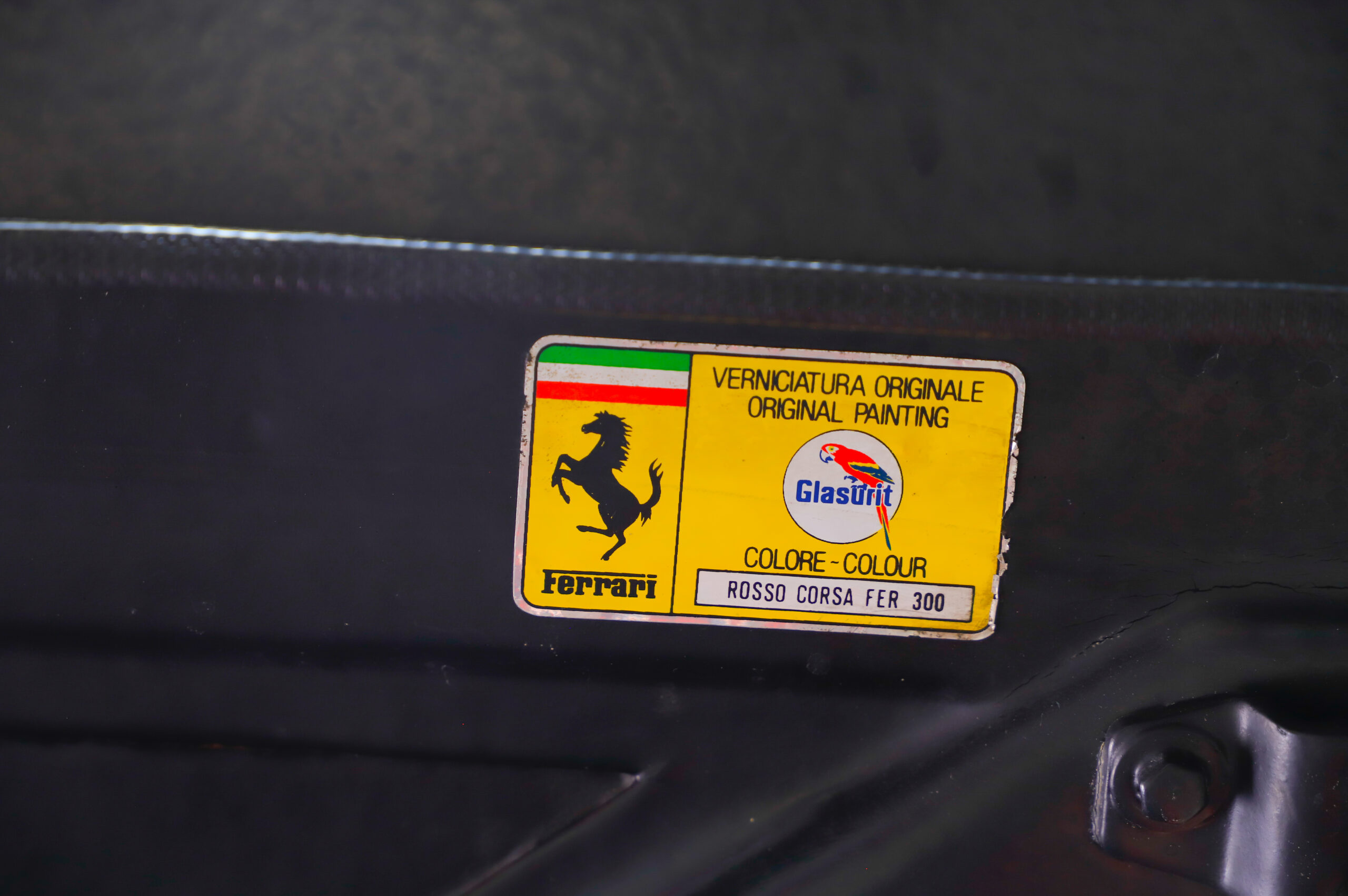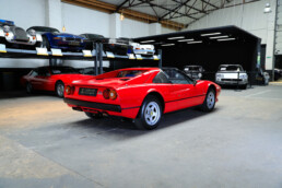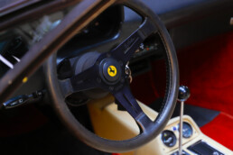 L’exemplaire que nous proposons est une superbe Ferrari 308 GTSi immatriculée pour la première fois le 12 mars 1982. Cette voiture conserve sa configuration d’origine, ce qui en fait un modèle particulièrement désirable pour les amateurs de classicisme et d’authenticité. Sa robe Rosso Corsa, teinte emblématique de la marque, est en parfait accord avec la ligne élégante et racée du modèle. L’intérieur, intégralement d’origine, offre un contraste saisissant et raffiné avec ses sièges en cuir blanc et ses moquettes rouges, soulignant l’élégance intemporelle de cette icône italienne.