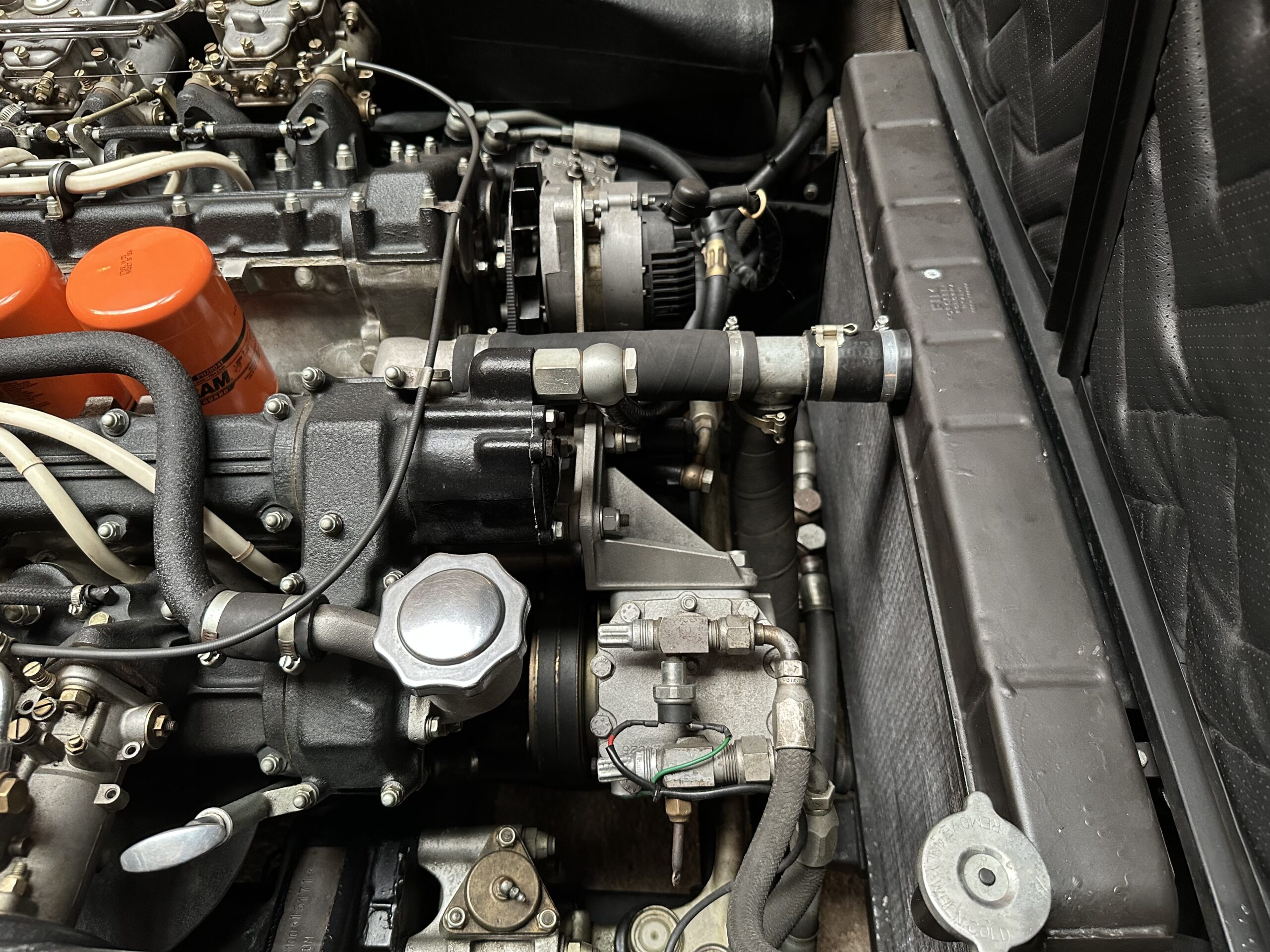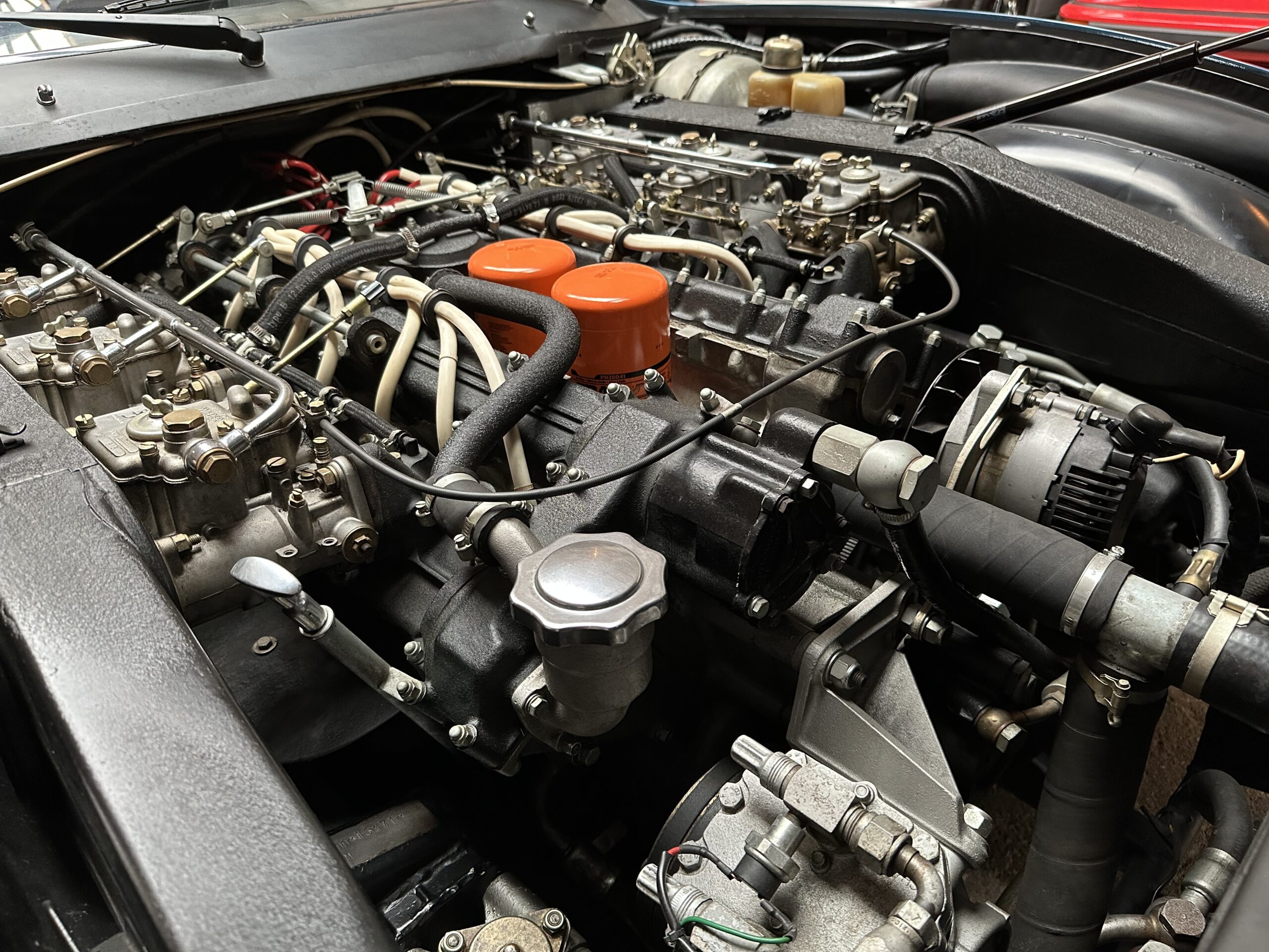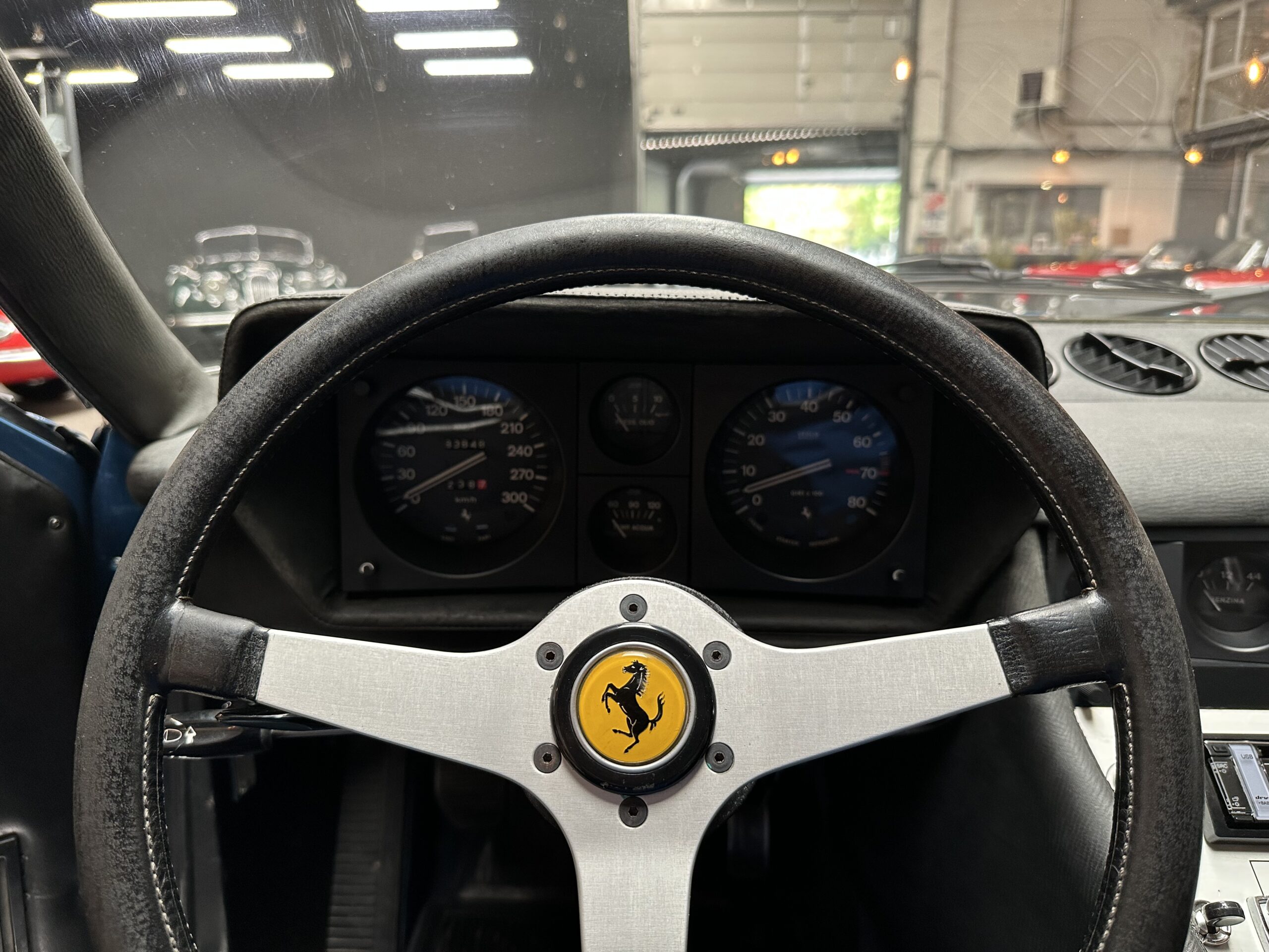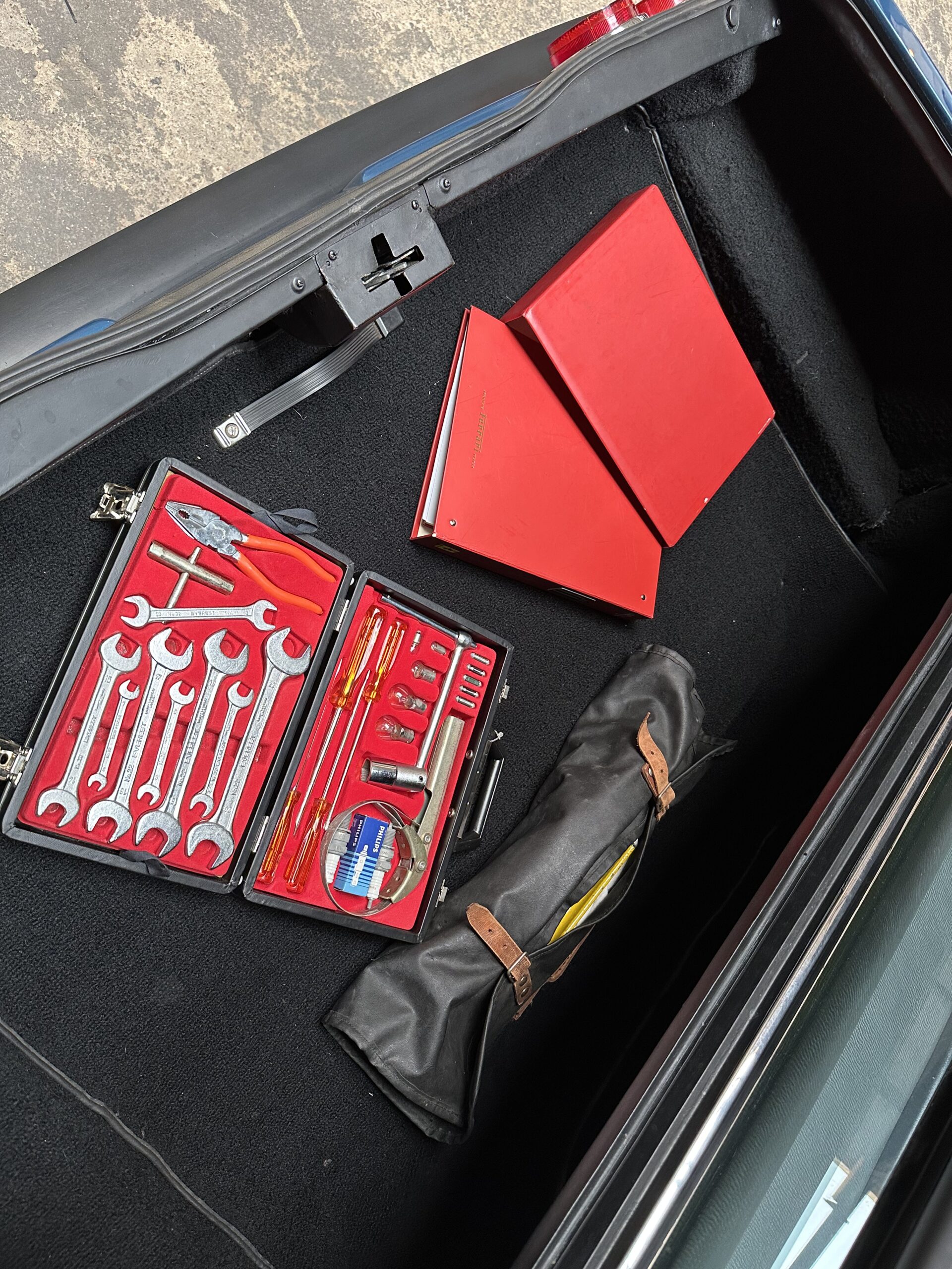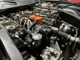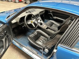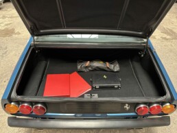 Le moteur et le pont sont d’origine, seule la boite de vitesses a été remplacée, comme c’est souvent le cas, il y a quelques années, Elle est néanmoins certifiée par Ferrari Classiche et possède son inéstimable classeur rouge.